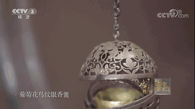 其中有一件文物珍寶「葡萄花鳥紋銀香囊」,