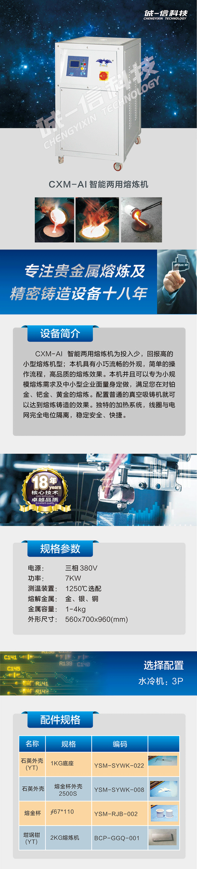 CXM-AI 方形熔煉機(jī)為投入少,回報高的小型熔金機(jī)型;本機(jī)具有小巧流暢的外觀,簡單的操作流程,高品質(zhì)的熔煉效果.本機(jī)并且可以專為小規(guī)模熔煉需求及中小型企業(yè)量身定制,滿足您對鉑金、鈀金、黃金的熔煉。配置普通的真空吸鑄機(jī)就可以達(dá)到熔煉鑄造的效果。獨特的加熱系統(tǒng),線圈與主電區(qū)完全電位隔離,穩(wěn)定安全、快捷。..