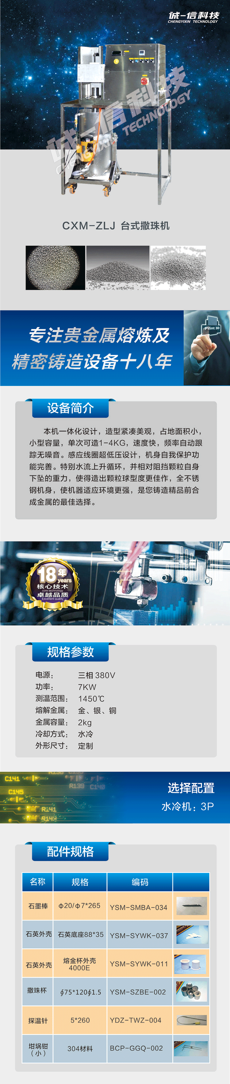 本機一體化設(shè)計,造型緊凌美觀,占地面積小小型容量,單次可造1-4KG.速度快頻率自動跟蹤無噪言。感應(yīng)線圈超低壓設(shè)計,機身自我保護功能完善。特制水流上升循環(huán),并相對阻擋顆粒自身下墜的重力,使得造出顆粒球型度更佳,全不銹鋼機身,使機器適應(yīng)環(huán)境更強,是您鑄造精品前合成金屬的最佳選擇。..