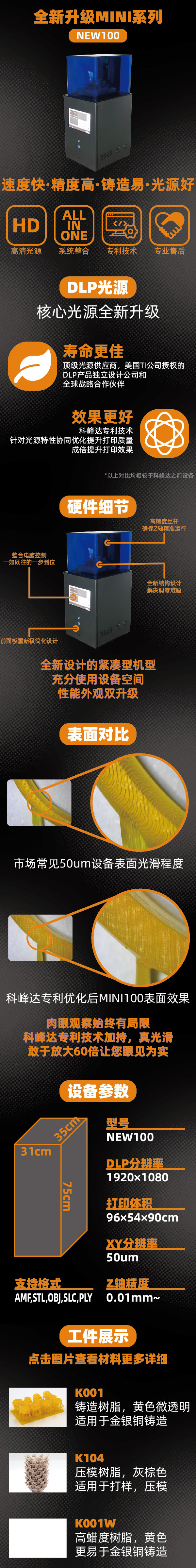 運(yùn)用自主開發(fā)畸變小鏡頭,使50μm分辨率同樣表現(xiàn)出色; 新設(shè)計(jì)物料盤,更換靈活; 高穩(wěn)定性LED光源; 一臺設(shè)備,多種打印材料可供選擇