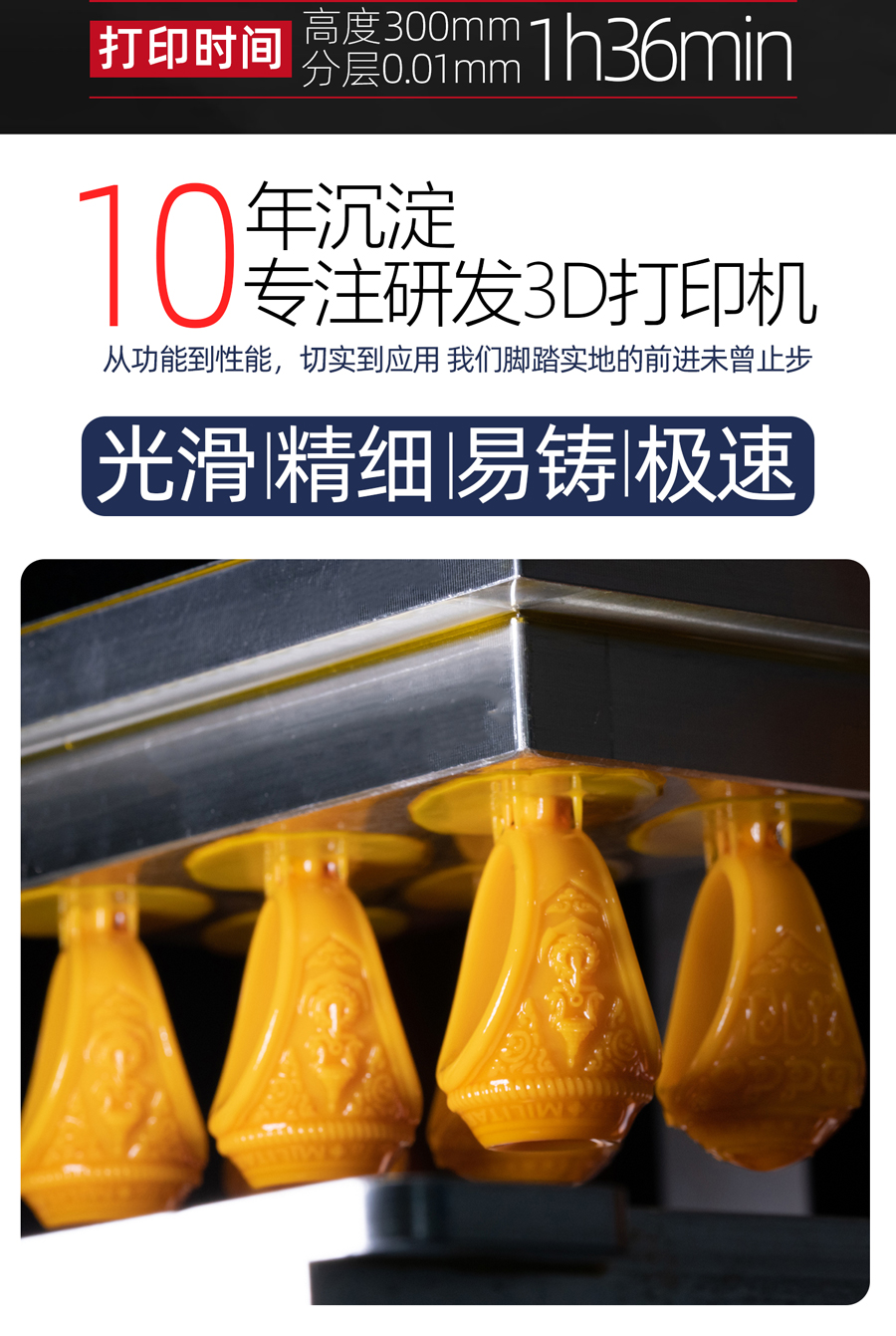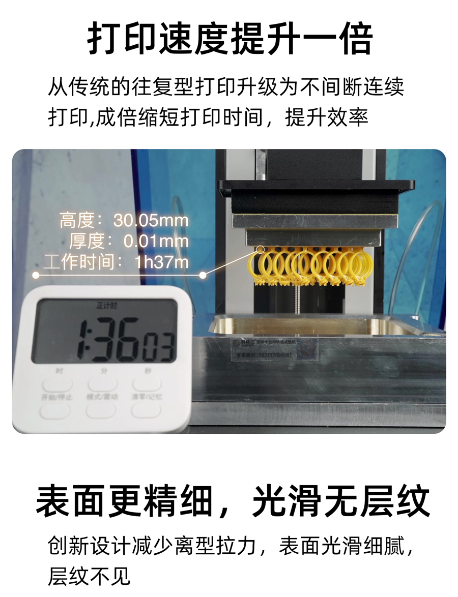 更光滑;更細(xì)膩;成本更低;打印時(shí)間縮短一倍以上
